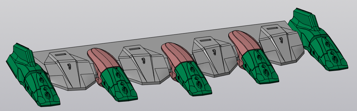 Режущая кромка является самым важным элементом ковша и изготавливается из высокопрочной и износостойкой стали. Форма и комплект защиты режущей кромки напрямую влияет на долговечность работы всего ковша в будущем.